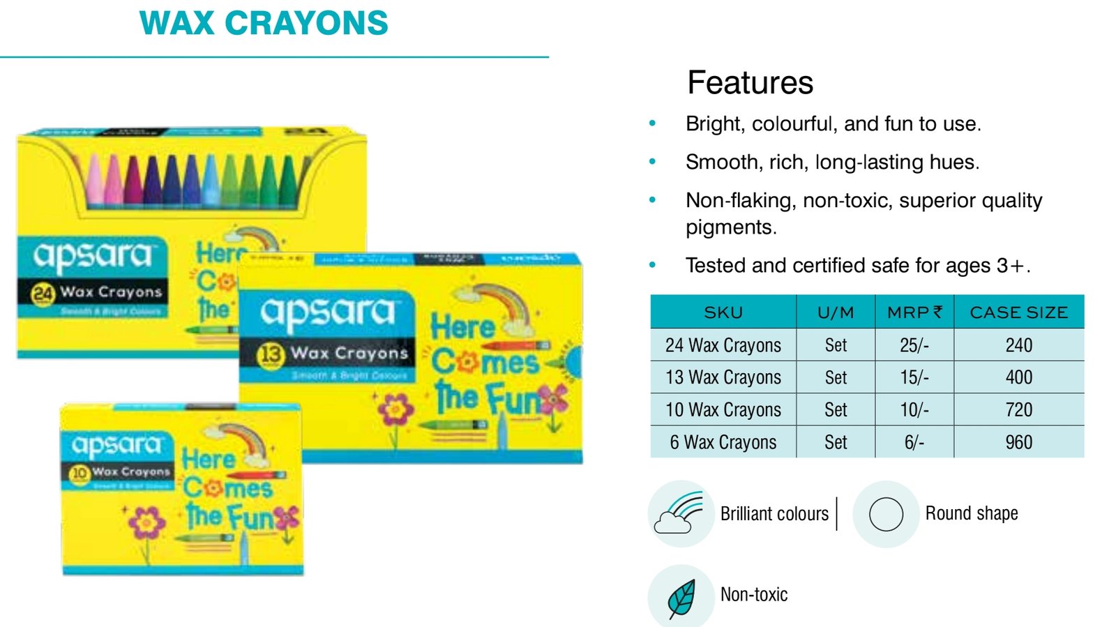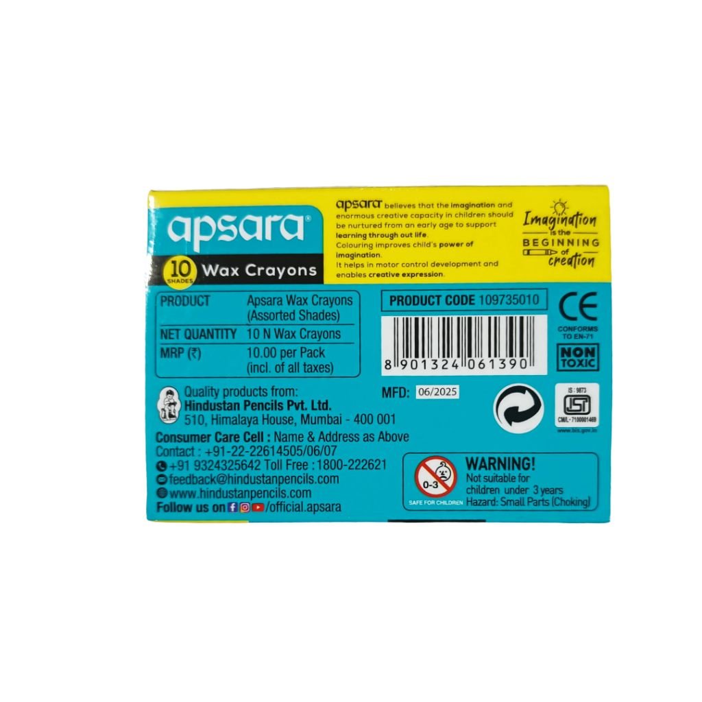 Apsara Wax Crayons – Smooth & Bright Colours (10 Shades)