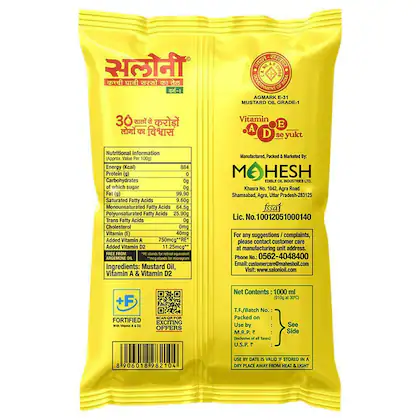 Saloni Kachi Ghani Mustard Oil (Pouch) – 1000mlSaloni Kachi Ghani Mustard Oil (Pouch) – 1000ml